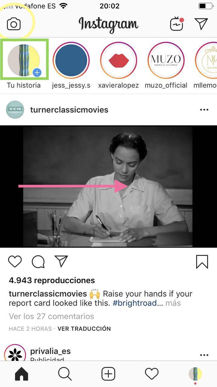 1. Pulsando tu foto de perfil en el que pone «Tu historia» (recuadro verde).